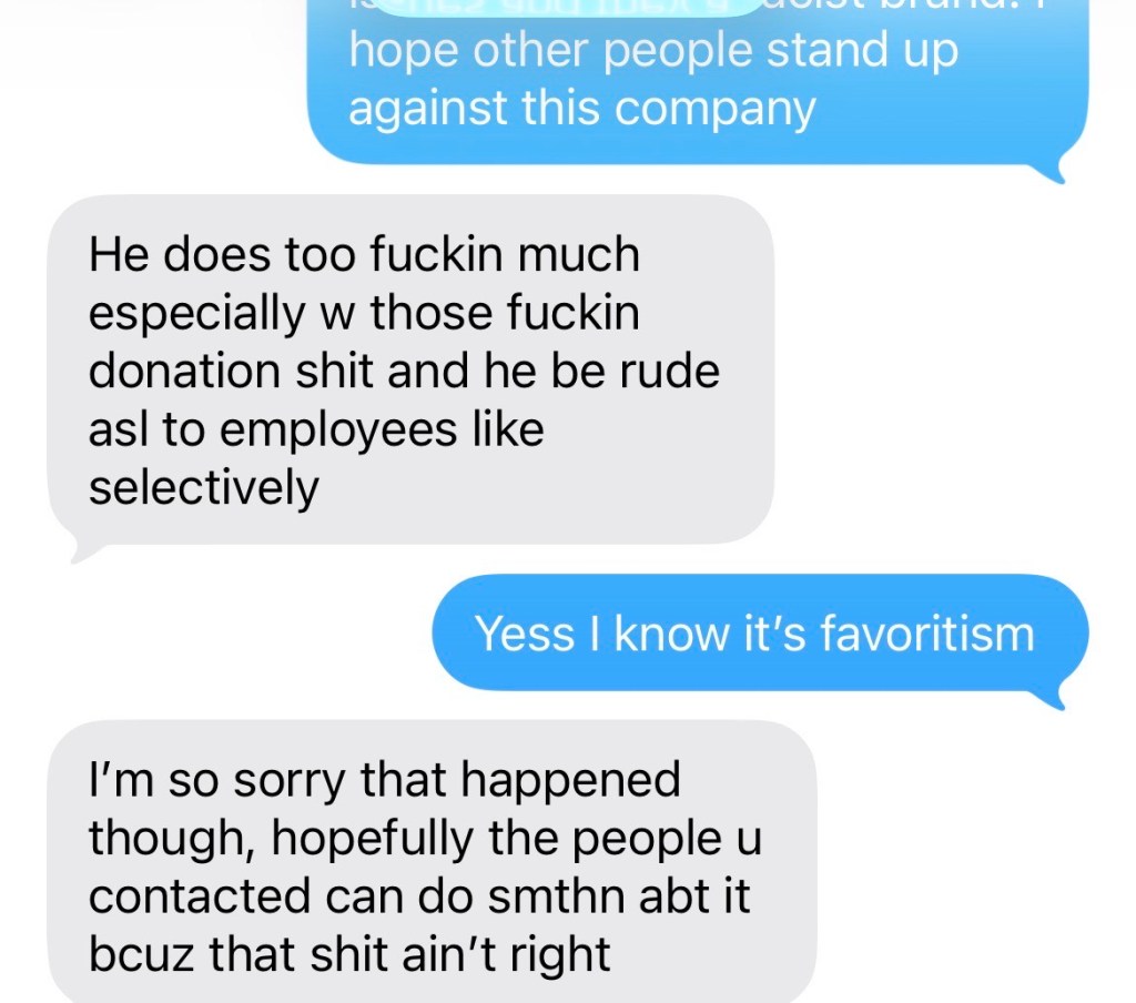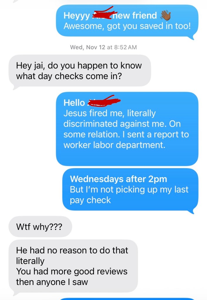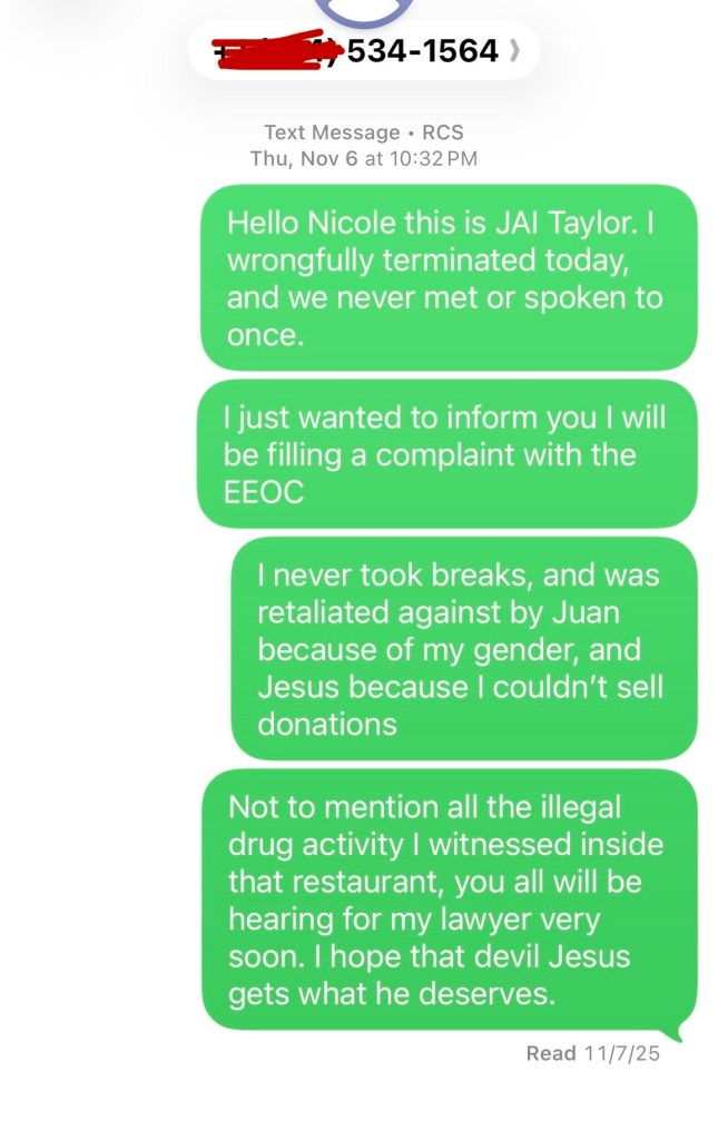 Let this be a lesson to all of you out there, be aware of this pattern with all companies who hire people and just want to fill bodies, they don’t care about the growth of the people. And we have rights; we’re simply trying to put food on the table. I never received my last paycheck, because their blood money is not valid in the house of the Lord, who is the only one who will have the last say.