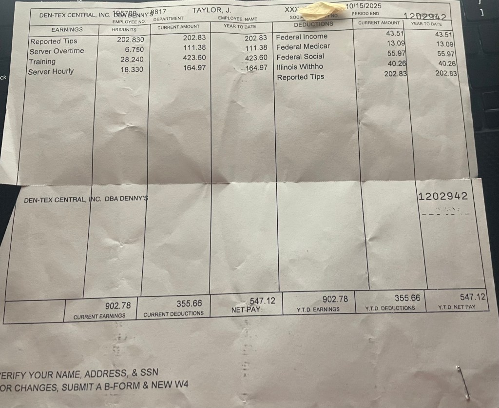 Hello, this is about my most recent experience working as a Denny’s server in Bolingbrook Illinois. As must of you know I am quite skilled, and have discovered racism and hostile work place environments, all over the world; from the Chicago Cubs, to AF1 security and Denny’s of course.